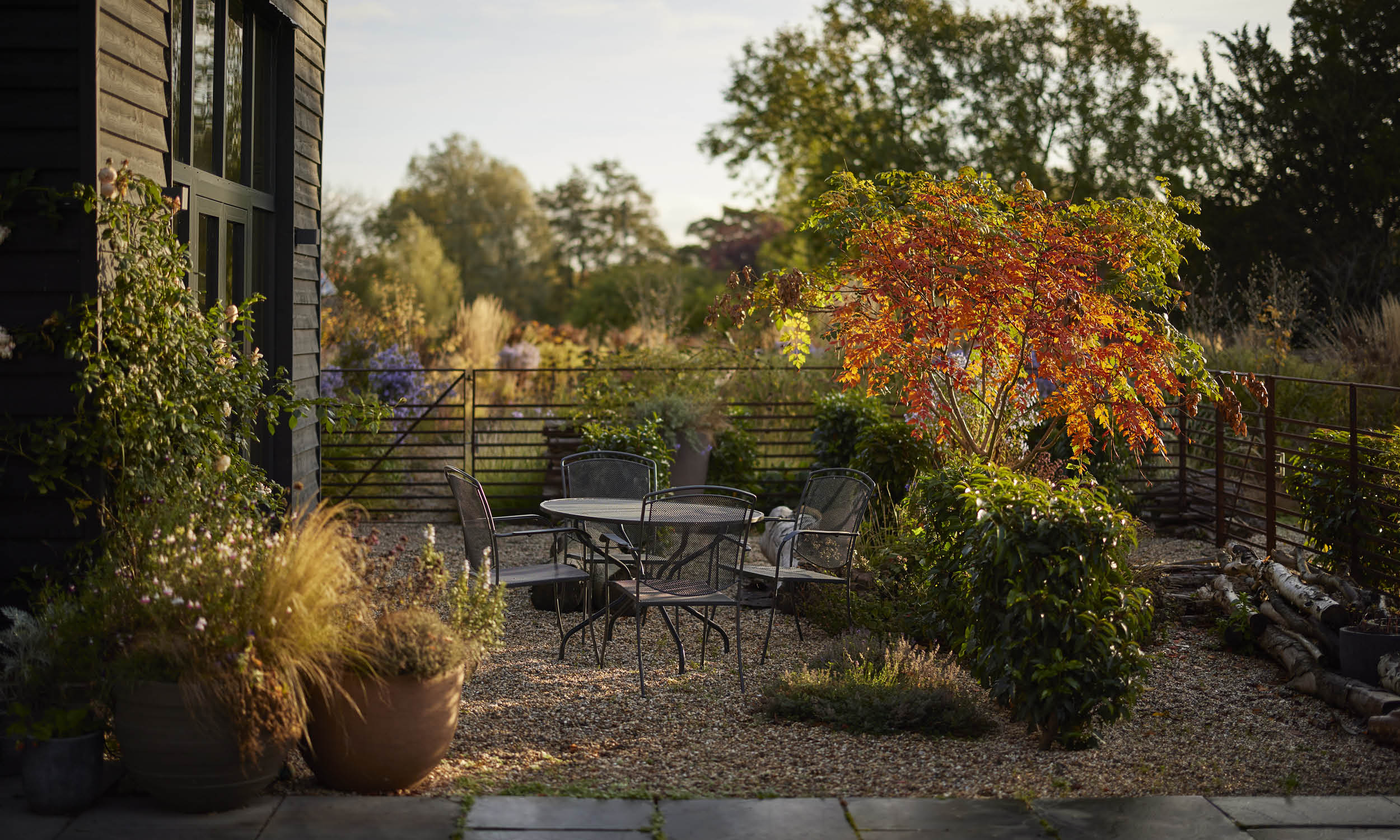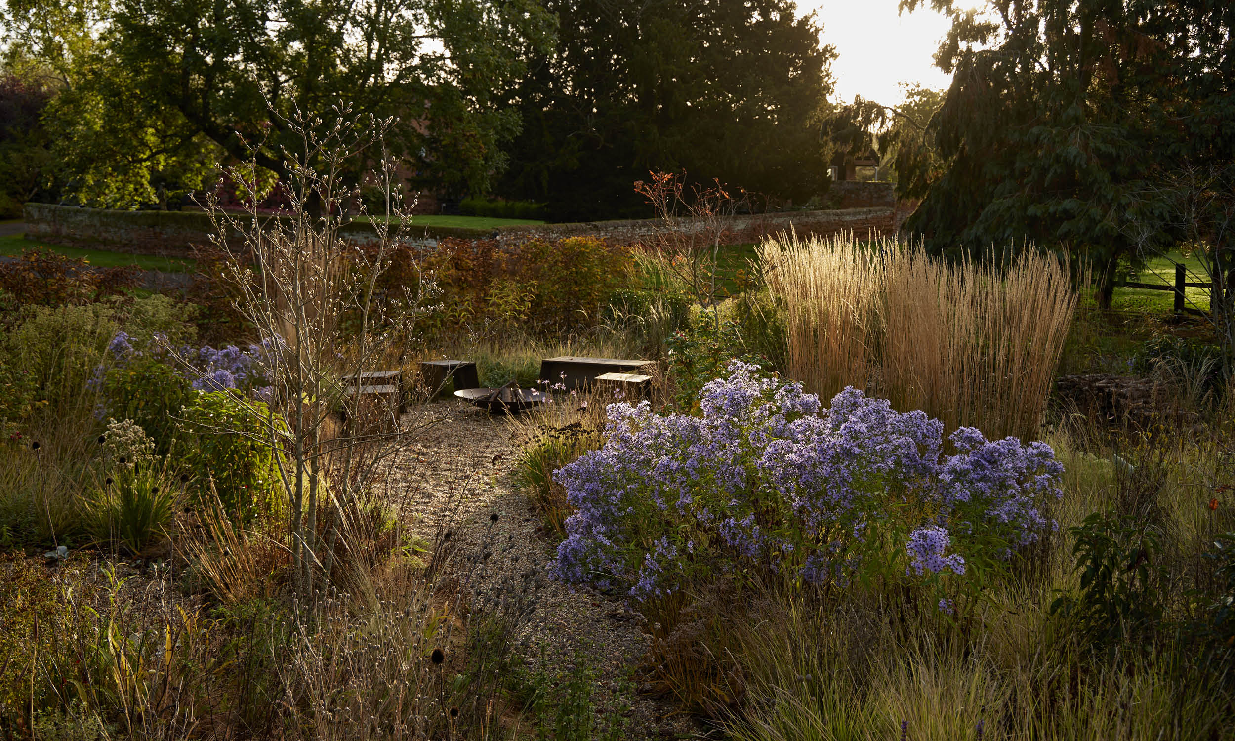 The site is crossed by meandering gravel paths leading to three areas – one created for sunbathing, one centred on the fire pit, and another on a sunny spot conceived for enjoying a morning coffee.