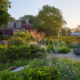 The former lawn was transformed into a richly planted perennial garden designed to attract wildlife. Grasses such as Sesleria autumnalis and Sporobolus heterolepis form a unifying matrix, interwoven with bulbs and over a thousand perennials for year-round interest. Ten new multistem trees, including Amelanchier, Clerodendrum trichotomum, Koelreuteria paniculata and Magnolia × loebneri ‘Merrill’, provide structure and seasonal beauty.